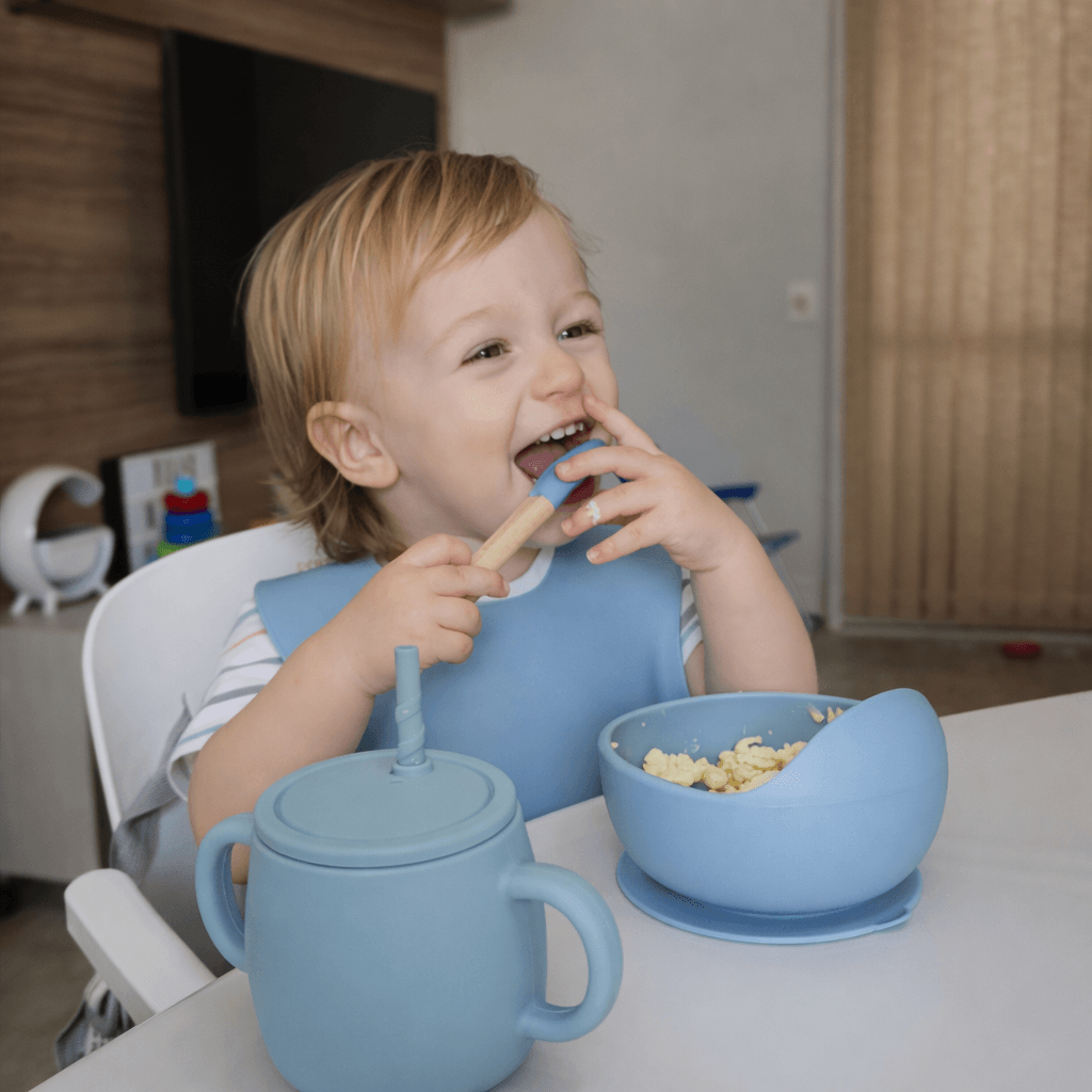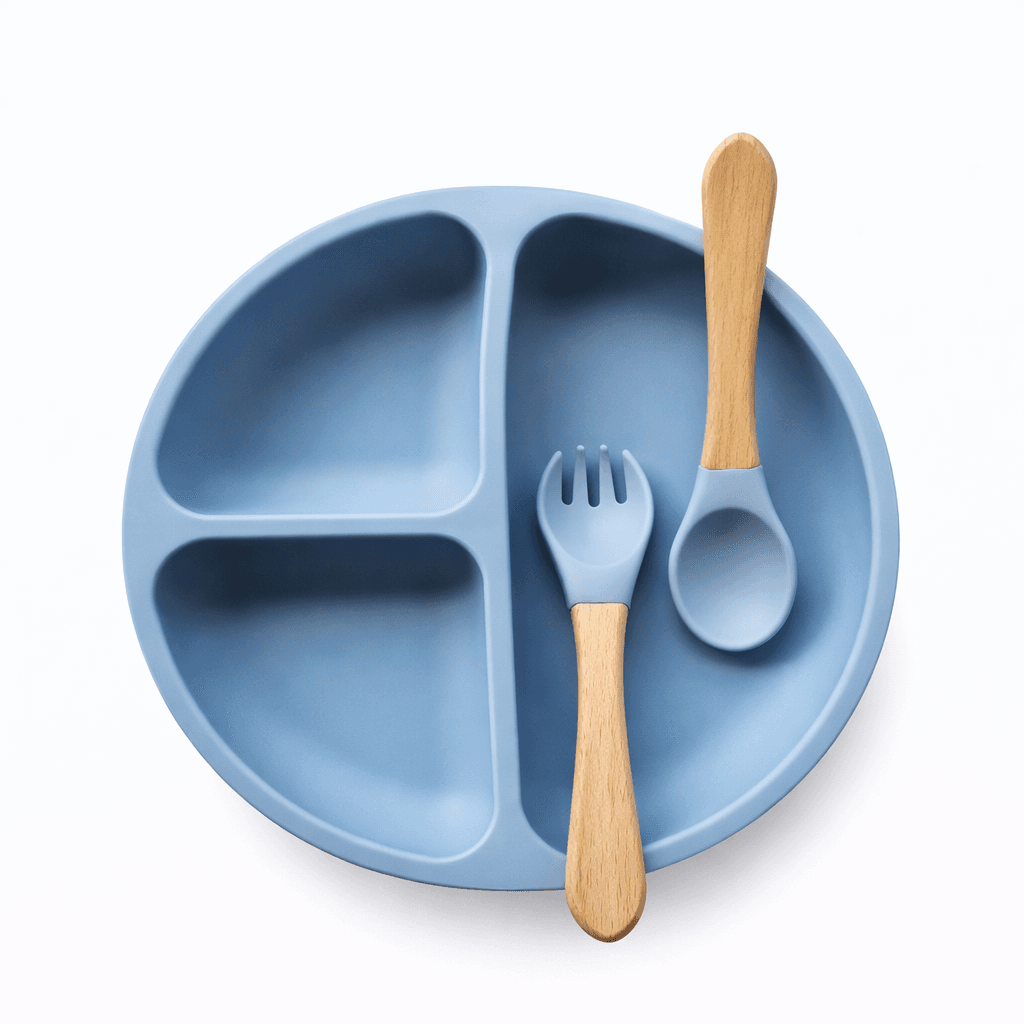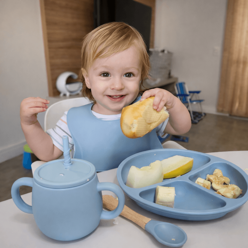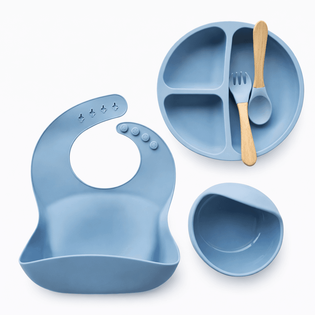 Kit de Introdução Alimentar completo para o seu bebê! Este kit inclui 1 jogo de talheres, 1 bowl, 1 prato com divisórias e 1 babador pega migalhas – tudo o que você precisa para tornar a hora da refeição prática e divertida.