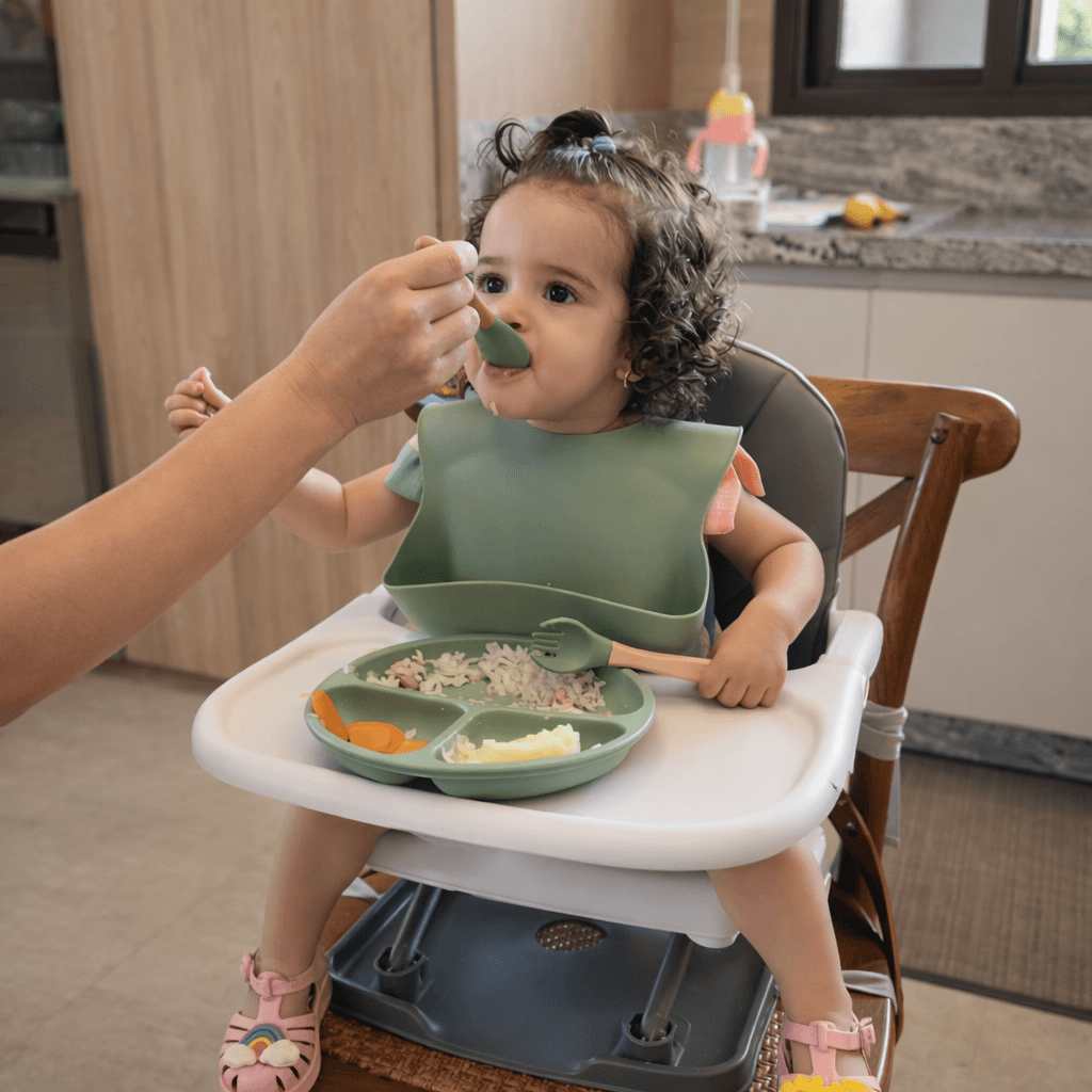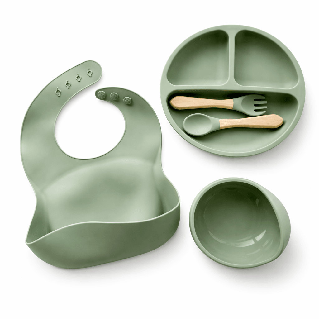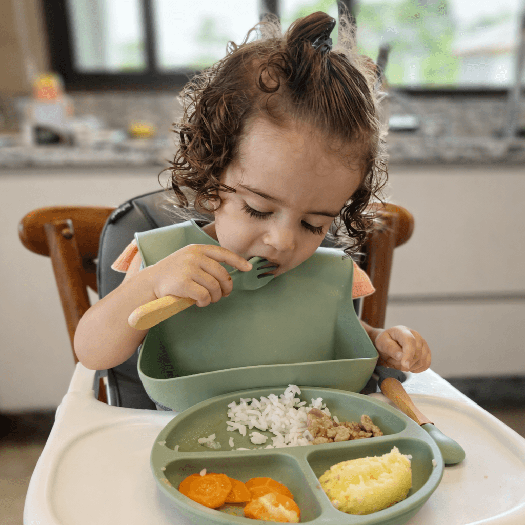 Kit de Introdução Alimentar completo para o seu bebê! Este kit inclui 1 jogo de talheres, 1 bowl, 1 prato com divisórias e 1 babador pega migalhas – tudo o que você precisa para tornar a hora da refeição prática e divertida.