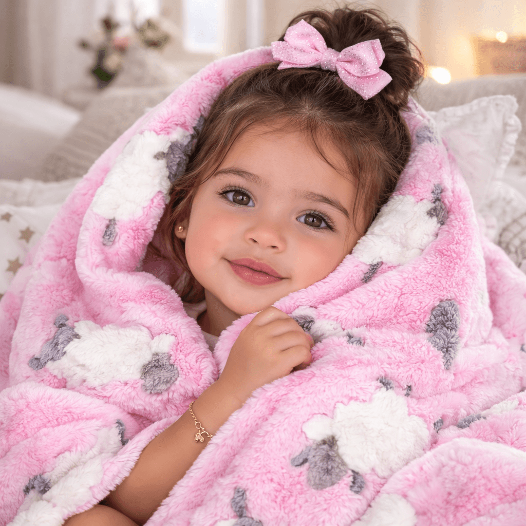 A mantinha em pelúcia macia à base de poliéster, com desenhos encantadores de ovelhinhas, é um acessório essencial para bebês. Feita com material de alta qualidade, proporciona uma textura suave e reconfortante, ideal para a pele delicada dos pequenos. Seu design charmoso não só adiciona um toque adorável à decoração do quarto infantil, como também oferece durabilidade e facilidade de cuidado, sendo lavável à máquina. Com essa mantinha, os bebês desfrutam de conforto e aconchego, tornando os momentos de descanso ainda mais agradáveis.