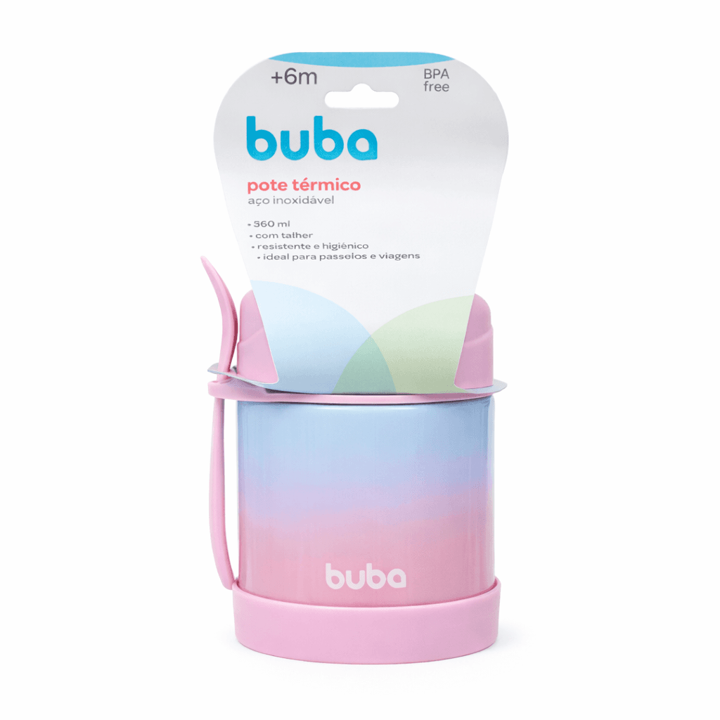 O Pote Térmico da marca Buba é a solução ideal para manter a comida do seu bebê fresca e na temperatura certa. Com materiais premium e isolamento térmico avançado, mantém os alimentos quentes ou gelados por até 5 horas, preservando sabor e nutrientes. Sua durabilidade e praticidade fazem dele o companheiro perfeito para uso diário ou em viagens, garantindo uma alimentação saudável e deliciosa onde quer que você esteja. Experimente e proporcione mais conforto e praticidade para a alimentação do seu bebê.